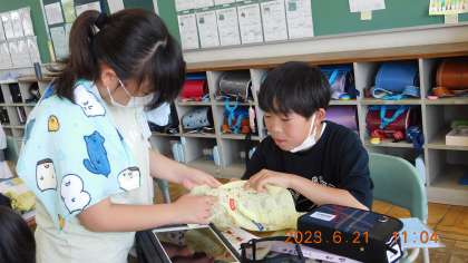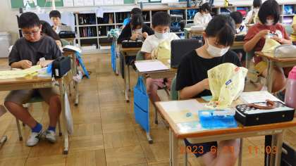今日は、はじめてのソーイングPART3でした。糸とおし、玉結びは大分慣れてきました。今日は、並縫い、本返し縫い、半返し縫いまで進みました。友達と確認しあいながら取り組む姿が学びにつながりますね。次は、かがり縫い、ボタンつけまで進む予定です。そして、付録のキッドで小物ケースをつくる予定です。