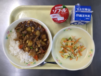 5月の給食がはじまりました。今日は児童が「じゃんけんのふりかけ、出ないんですか」と尋ねてくる隠れた人気メニューが登場です。