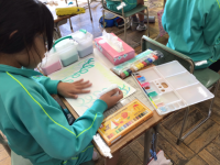 国語の時間、学校の中のお気に入りの場所について話し合いました。子どもたちの中から、校庭や体育館、プール、図書室などさまざまな場所がでてきました。そのお気に入りの場所がどうしてすきなのか理由を考えて、一人ひとりが文章に表しました。お気に入りの写真をテレビに映しながら、聞く人に分かりやすく発表することができました。