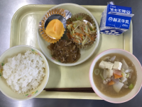 中華麺、牛乳、しゅうゆラーメンの汁、しゅうまい、ひじきサラダ