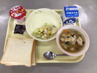 中華麺、牛乳、しゅうゆラーメンの汁、しゅうまい、ひじきサラダ
