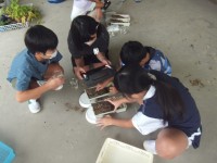 家庭科の時間、コンロの正しい使い方を確認してから、湯をわかしました。そのお湯を使って、緑茶の入れ方や出し方の練習をしました。どの湯のみのお茶も同じ濃さになるように少しずつ順番につぎ分ける姿が見られました。また、茶たくに湯のみをのせて、相手にすすめることもできました。