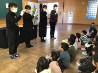 給食当番にも慣れてきました。白衣の着替え、マスクをするなど服装を整えて、給食室に給食ワゴンを取りに行きます。きちんと並び、あいさつも上手にできるようになりました。今日の献立は「麦ごはん、牛乳、若竹煮、豆みそ、キャベツと塩昆布のつけもの」でした。