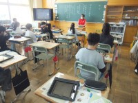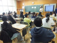 外国語の時間、AETの先生から、写真やイラスト等を見ながら、世界がかかえる問題...