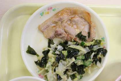 本日の給食の献立は、奈良市郷土料理メニューのにゅう麺です。その他には、豚の生姜焼きやきゅうりの胡麻酢あえ、あさか舞が出ました。おいしい給食を食べて午後の授業参観は元気モリモリの姿を見せられそうです。