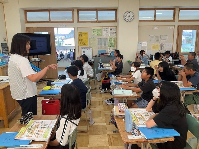 理科や家庭科、外国語、書写などは、中学校の教科担任制を視野に入れ、担任以外の先生と一緒に学習しています。先生の得意分野を生かして授業の充実を図っています。