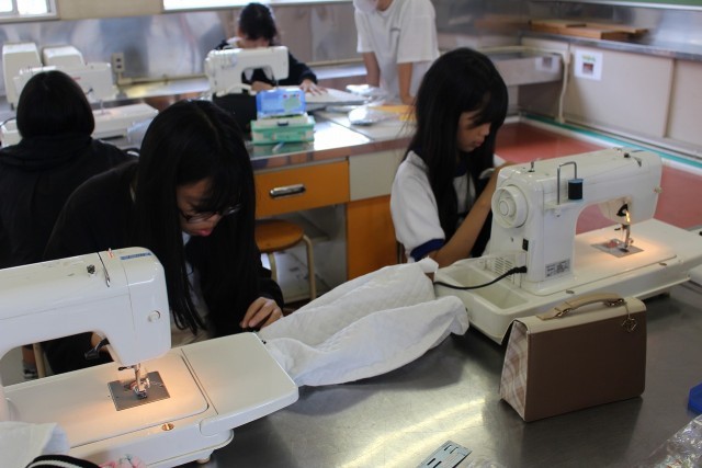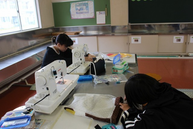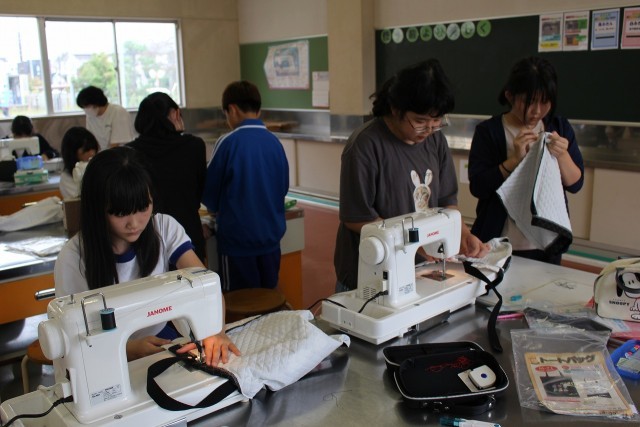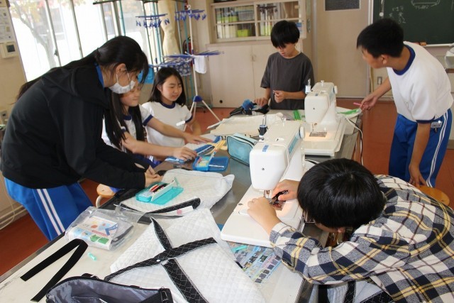 家庭科の時間にミシンを使ってトートバッグづくりに取り組んでいます。自分でつくったトートバッグには愛着が湧くことでしょう。仕上がりが楽しみです。