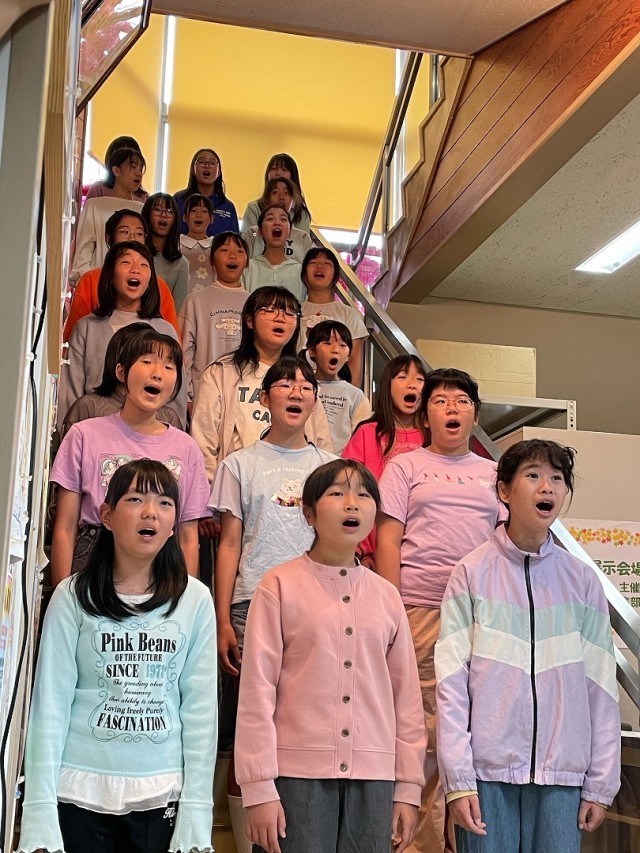 10月11日、12日に小山田地区文化祭がありました。開会式に本校の特設合唱クラブが招待され、きれいな歌声を披露してきました。保護者の方や地域の方もたくさん駆けつけ、とても喜んでいただきました。展示室には本校代表児童の習字や絵などの作品も飾られました。地域の方にも合唱や作品を通して、子供たちの頑張りを見ていただける良い機会となりました。
