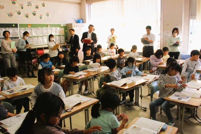 今日は教職員の研修日です。本校では、市内で国語を研究している先生方を迎えて授業公開を行いました。子供達は、物語「お手紙」を読み、がまくんとかえるくんの「心の声」を豊かに想像することができていました。学習のまとめとして、登場人物への手紙に表すこともできました。一生懸命に考え、話し、書いている姿が印象的でした。