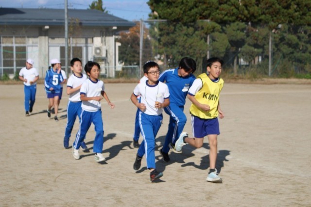 来週のマラソンチャレンジに向けて、無理のない速さで長く走ることを目標にして時間走に取り組んでいます。同じペースで走れる友達とグループを作り、励ましながら走っています。無理のない自分のペースで走るとある時間を超えると体がペースに慣れてきて、とても気持ちよく走ることができるようになってきます。あるグループでは、20分近く止まらずに走り続けることができるようになってきました。走った後も心地よく次も走ってみたいと思えるようです。運動をすると気持ちがいいと感じる体験を積み重ねています。