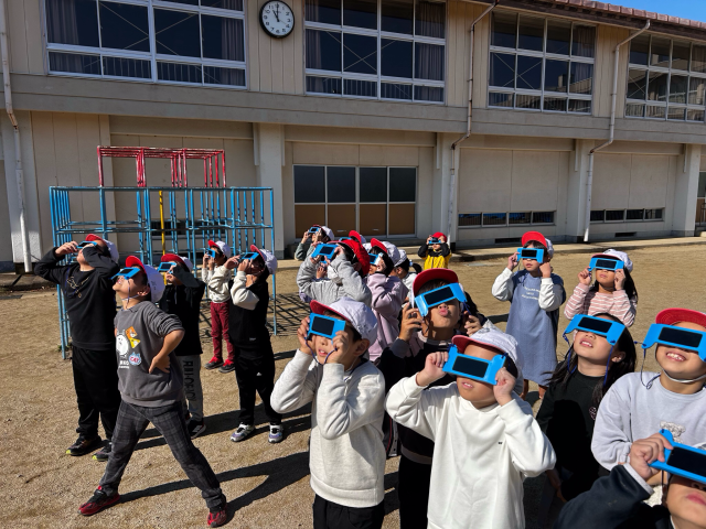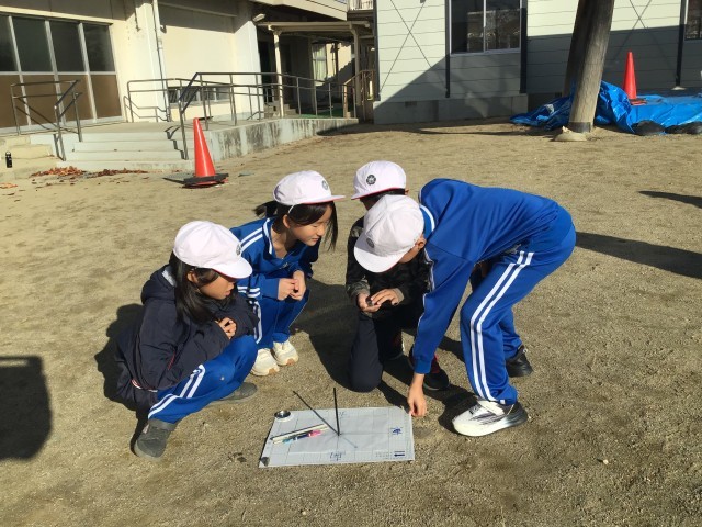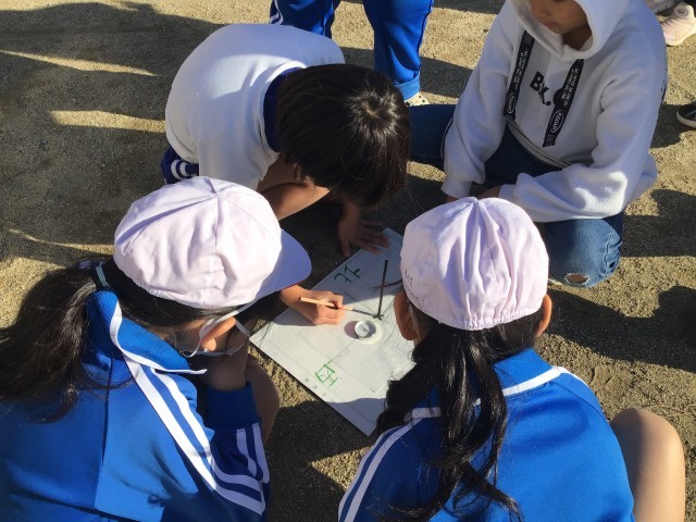 太陽の位置と影の向きを1日を通して観察し、影の向きと太陽の位置の関係に気づくことができました。