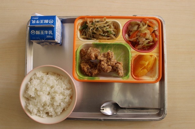 今日のお弁当給食は、あさか舞ごはん、牛乳、鶏のから揚げ、五目炒め、もやしとにらのラー油あえ、あまなつかんシロップでした。おかずの量が多くて食べごたえがありました。どのおかずも味つけがよくおいしくいただきました。気温が低い日が続きます。3度の食事をしっかり食べて、かぜやインフルエンザにかからないようにしましょう。