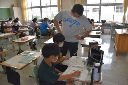 5年生は、子ども同士で教え合いながら、角度を求めていました。どうやって角度を求めたのかを、丁寧に話し合っている姿、とても立派でした。