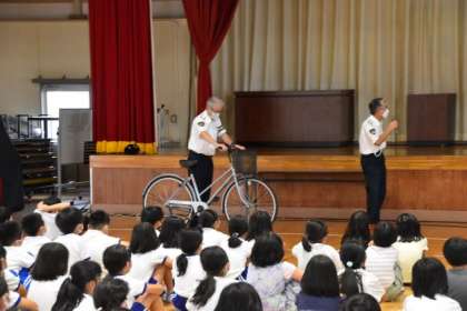 3・4年生は、自転車の乗り方について、丁寧に教えていただきました。