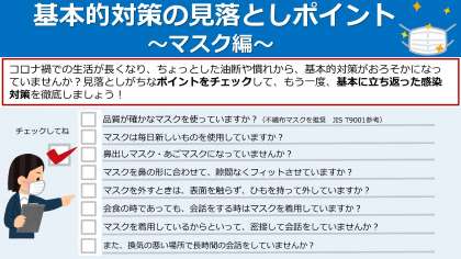 新型コロナウイルスとインフルエンザの同時流行が懸念されています。コロナ、インフルエンザ、風邪の予防のために、マスクの正しい着用の仕方に力を入れていきます。