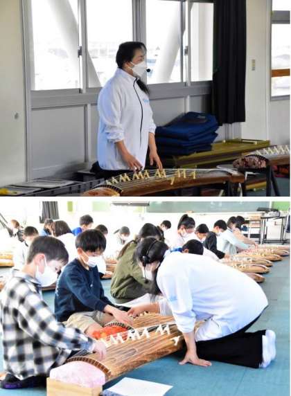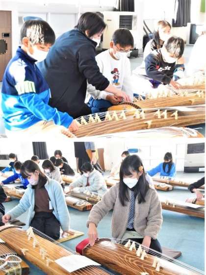 後藤先生をはじめとした3人の先生を講師にお招きし、4年生がお琴教室を行いました。