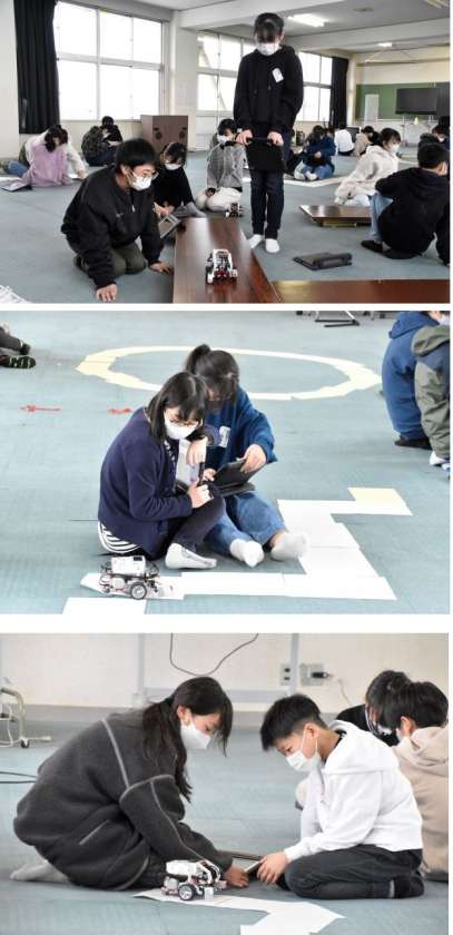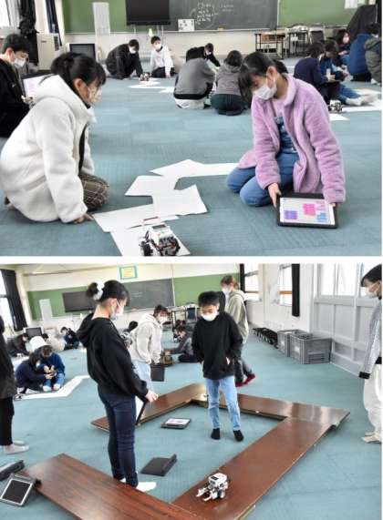 mBotを使い、ロボットにプログラミングで命令し、指定した動作ができるように、6年生がプログラミング学習に取り組んでいました。自分たちが考えた動きをするように、何度も指令の出し方を工夫しながら進める6年生の姿が、とても印象に残りました。プログラミング学習の時間は、とても楽しい時間のようです。