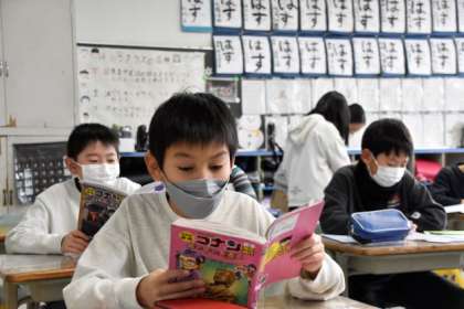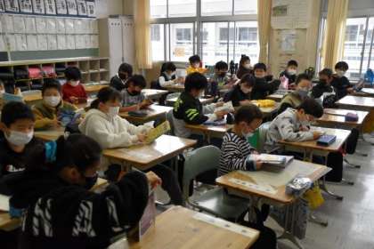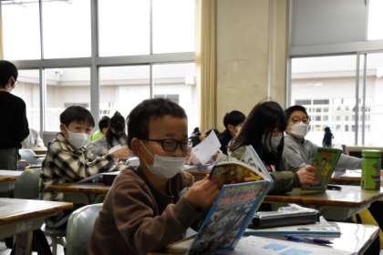 集中して読書をする4年生。朝の時間を有効に使い、落ち着いて生活しています。