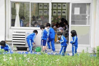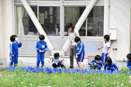 早く大きくなれ! 1年生は思いを込めてアサガオを育てています。