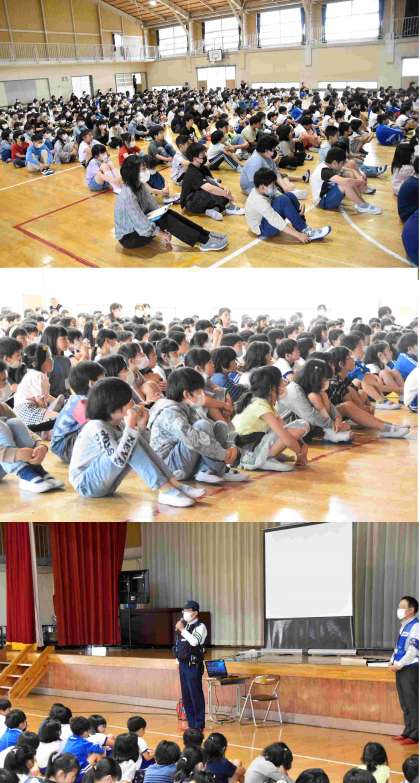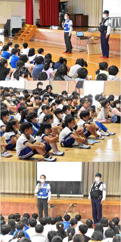 何回も子どもたちに話していることです。今日は、子どもたちをねらう悪い人(不審者)から身を守るために大切なことを、大槻交番の所長様と福島県警察スクールサポーター様のお二人に教えていただきました。