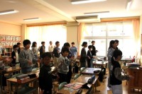 震災について学びます。みんな真剣な表情で話を聞いています。