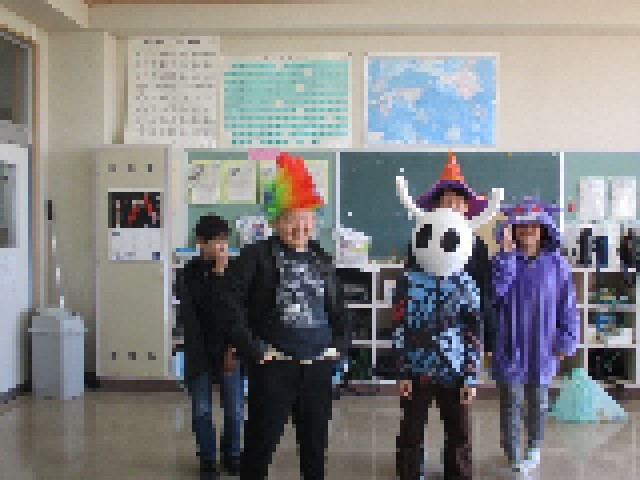昨日の海老根小学校は、1日早い「ハロウィンデー」でした。朝から給食までの時間を、子どもたちも先生方も、思い思いに仮装をして過ごしました。ハロウィンの英語の学習は、本校では毎年恒例となっています。今年度は外国語の時間ではなく、休み時間等に先生方と英語で交流して、お楽しみのごほうびをゲットしました。普段とは違う格好に笑顔がはじけ、みんなで楽しい一日を過ごしました。