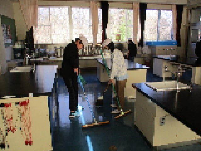 水曜日から学期末清掃が始まりました。普段、自分たちではなかなかお掃除ができない特別教室も、この機会に、はき掃除やぞうきんがけを行います。「いつもよりもすみずみまでお掃除します。」「ロッカーや棚の水拭きもします。」と、自分たちで仕事を見つけながら丁寧に清掃する様子が見られました。