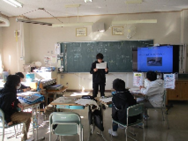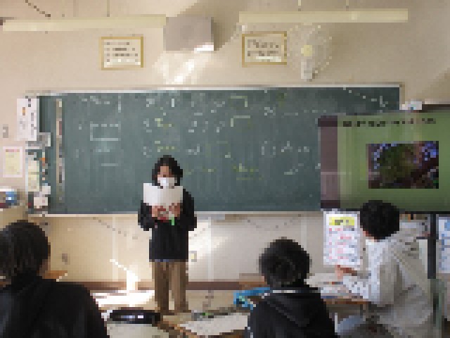 6年生が、ベンジャミン先生との外国語科の学習の時間に、「生き物のために自分たちができることは何か」を考え、発表をしました。地球上に暮らす動物たちが生きていくためには、地球温暖化をストップさせることが大事です。そのために、エコバッグを使うようにしたいなど、様々な発表が聞かれました。