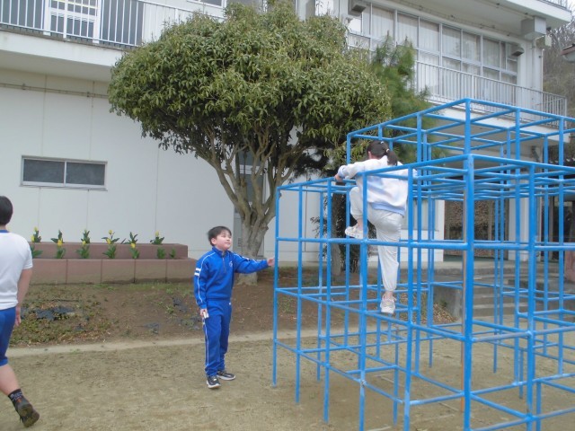 今年度初めて、全校生が外遊びをしました。