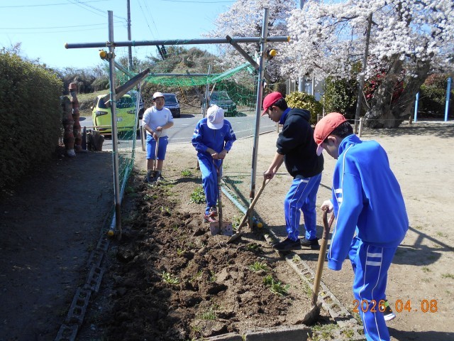 先週に引き続き、5・6年生5人で畑を耕しました。