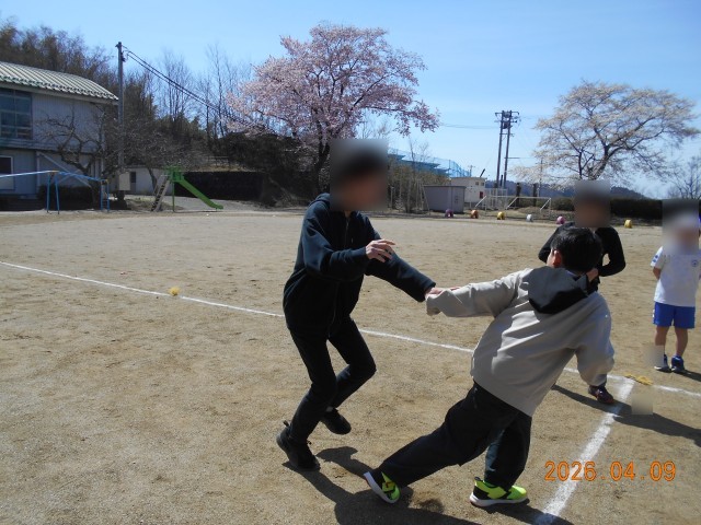 4校時に、全員がそろって運動会のリレーの練習を行いました。