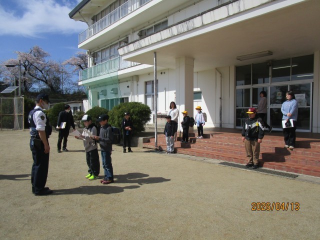 なお、通学路の危険箇所の点検も兼ねながら、東部駐在所の皆さんと一緒に下校しました。