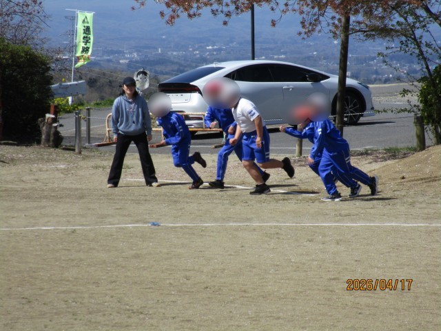 3校時目に全校生で運動会の練習をしました。