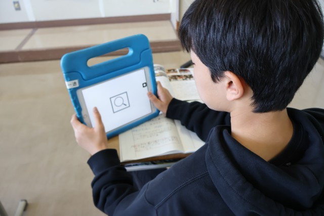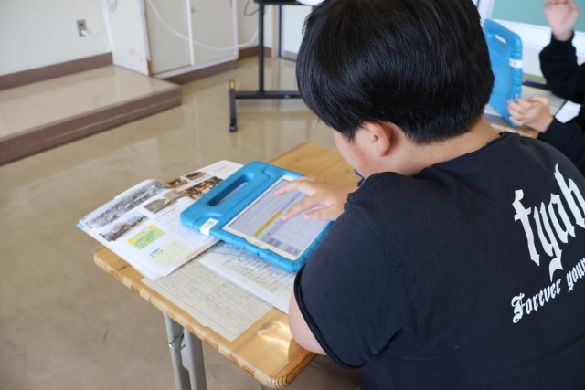 タブレットを使って、自分の考えや調べた多ことをまとめました。