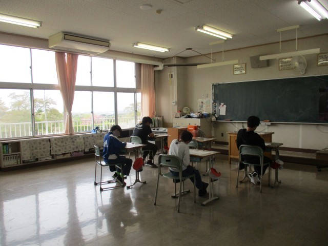 集中して問題を解いています。