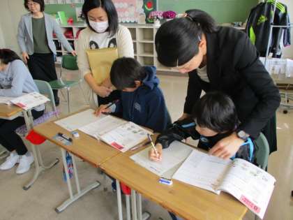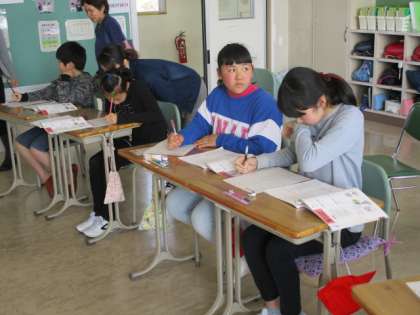 5・6年生の授業参観のようすです。家庭科の学習をしていました。子どもたちは、自分の生活リズムを振り返り、見直していました。また、自分にできる家庭での仕事について考えていました。
