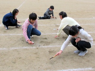 明日の運動会に向けて、5・6年生が運動会の準備に取り組みました。