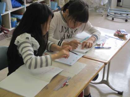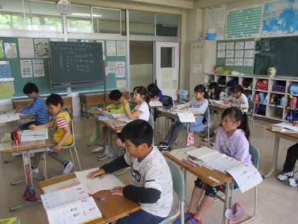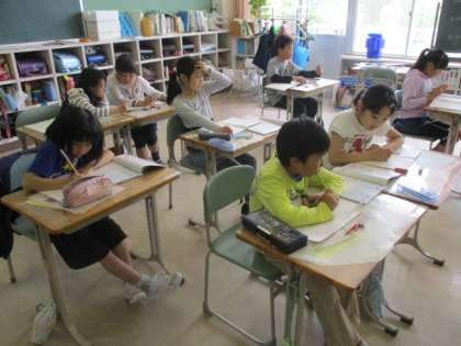 3・4年生の理科の授業のようすです。天気と気温をテーマに学習していました。子どもたちは、折れ線グラフから、天気によって気温の変わり方が違うことを読み取っていました。