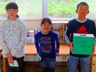 生活委員会のみなさんが行った「緑の羽募金」活動。しっかりとあいさつする姿がとてもすてきでした!