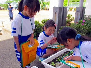 ホウセンカを観察しに来た1年生は、「うわぁ!」と大きな声を出し、ホウセンカの生長を喜んでいました。ホウセンカの生長を喜ぶ1年生の姿、ホウセンカを真剣に観察する姿が、とってもすてきでした!