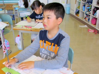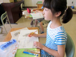4年生は、垂直の学習に取り組んでいます。垂直の意味を知ったり、正しい定規の使い方で垂直な線を引いたりしています。上手に定規が使えたかな?