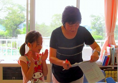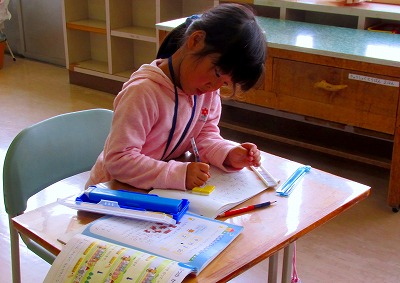 1年生は、1学期に学習した内容の振り返りの時間。「できるかな」に挑戦。みんな、しっかりと学習したことを生かして計算できました。