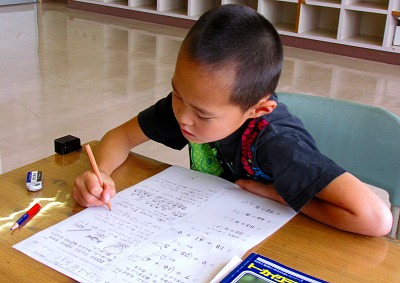 どこに( )をつけると簡単に計算できるか考えました。はじめは難しく思っていた子どもたちですが、あっという間に簡単に計算できることに気づきました! さすが2年生!