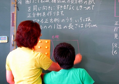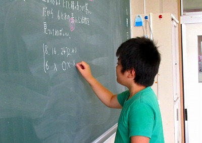 5年生は最小公倍数の学習。「あっ、これは違う。48だ。」と黒板の前で、考えを確かめる姿から、学習に集中していることがよく分かりました。自分の考えをしっかり持って取り組む様子に、「さすが5年生!」と感心しました。