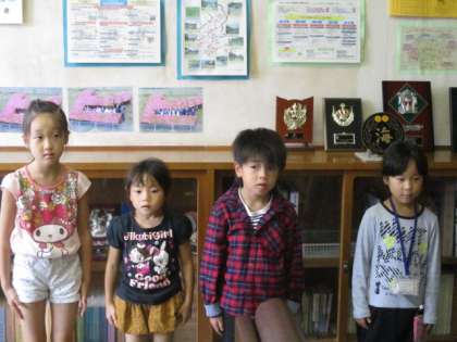 1・2年生の国語の授業のようすです。詩の学習のまとめとして、校長室で、詩の発表をしてくれました。1年生は、2つの詩を暗唱しました。2年生は、教科書の詩とそれをもとに自分で作った詩を音読しました。発表を聞いた感想も述べ合うことができて、感心しました。また聞かせてくださいね。