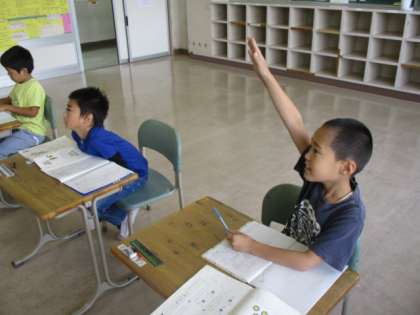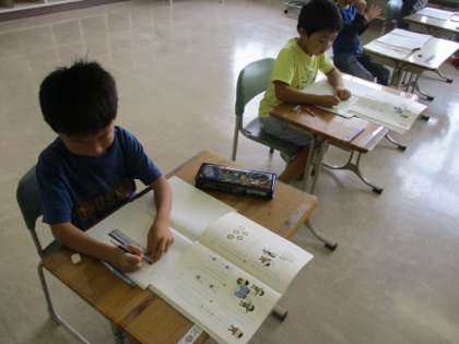 2年生の国語の授業のようすです。漢字の組み合わせをテーマに学習していました。子どもたちは、谷と川を合わせて「谷川」というように、これまでに学習してきた漢字を組み合わせて熟語を作っていました。