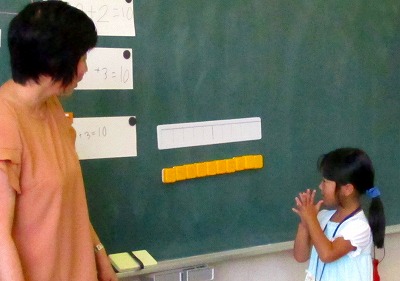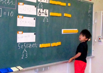 9月5日(火)には、1年算数科の授業研究会を行いました。3つの数を足して10になる式を考える学習に取り組んだ子どもたちは、それぞれ方法を工夫して、たくさんの式を考えることができました。