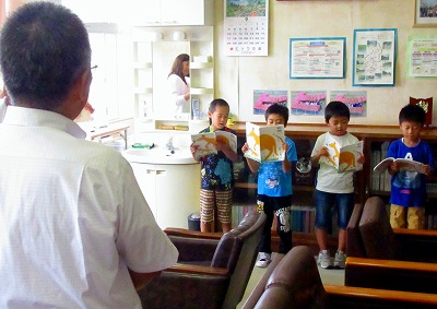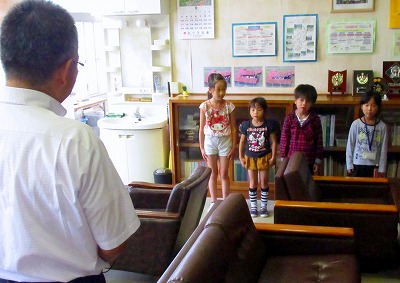 1・2年生の子どもたちが、校長室で音読発表をしました!