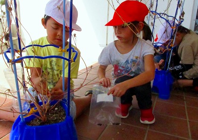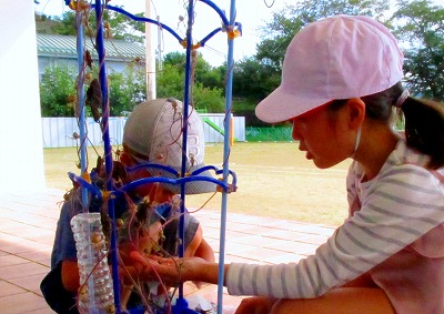 1・2年生は、生活科で育ててきた、アサガオやホウセンカの種を収穫しました。