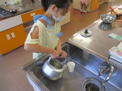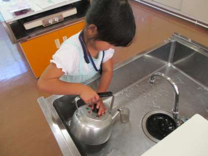 やかんの水を、できるだけこぼさないように気をつけていました。